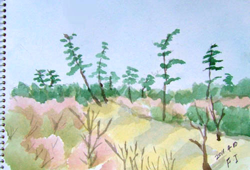 NO.870 二週間ぶりにスケッチ。。。 (2011/4/1)今日から4月、春の日差しのようで、まだまだ、春は遠いと感じる景色ですよね〜 一日も早く色んな意味で本当の春が来るよう祈るのみです。。。 本日の、出来上がり〜 快晴なのに、気のせいか、何だか物哀しいスケッチになってしまいました。。。 15分スケッチ・2011年4月 で、ご覧頂けます。 |