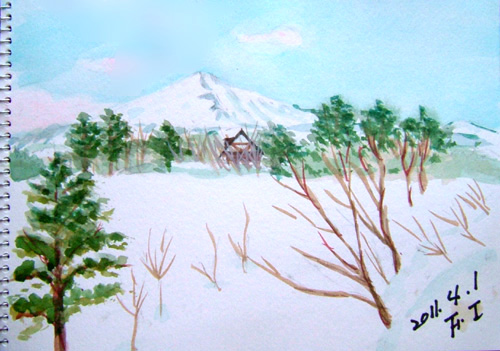 NO.872 福寿草 & 一週間ぶりにスケッチ。。。(2011/4/17)今頃になって、福寿草の花を見に行って来ました、やはり春ですね〜 \(☆^∇゚)o (^^;☆\(▼▼#) 下方には、まだ雪が残ってます〜(^-^;) 近くの子吉川では、ネコヤナギも春の訪れを喜んでるようにも見えましたよ(^-^;) 本日の、出来上がり〜、まだ雪があります〜(^-^;) でも、県南の海辺にある にかほ市にある「勢至公園」の桜が咲きだしたそうなので、 一週間後が楽しみです〜♪ 行かれるかしら?(^▽^;) 15分スケッチ・2011年4月 で、ご覧頂けます。 比べられないのがイイですね〜 \(☆^∇゚)o (^^;☆\(▼▼#) |