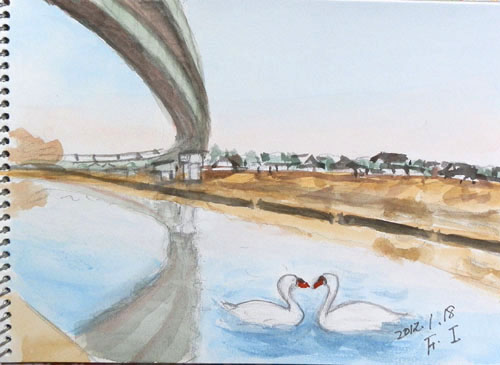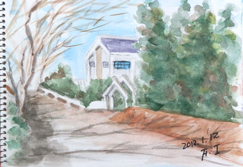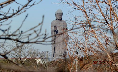 NO.918 ウォーク&スケッチ♪ (12/1/12)日記更新サボる癖が付いていますが、今年も宜しくお願い致します(^▽^;) 生活環境も変わり、今年の冬からは雪のない生活も慣れて楽チンしていますが 健康作りの為にも、お婆ちゃんを近くにある福祉センターの お風呂に連日のように連れて行ったり、 毎日のウォーキングはなるべく欠かさないように、 色々なコースを約1時間ほど実践したり、頑張ってます♪ でも、スケッチはサボってますね〜(^-^;) スケッチ出来上がり〜(^-^;) ここの左側に桜並木があり、春が楽しみです♪ 15分スケッチ・2012年1月 で、ご覧頂けます。 大仏さん、少しズームしてみました〜♪ 普段良く見る大仏さんは、横顔です。 そうそう、コースによっては、動物園でもないのに、ラクダが飼われていました。 何の為? ビックリ!! |